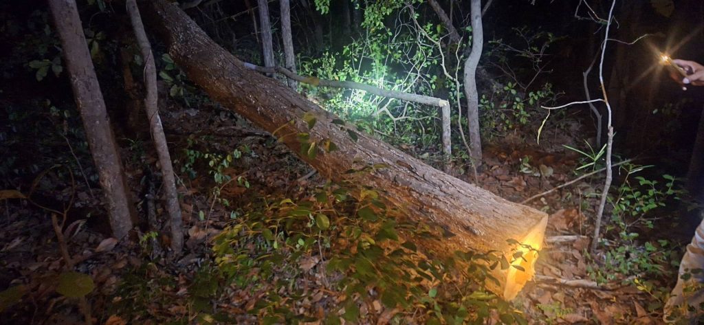 22 เม.ย. 2568 เวลาประมาณ 18.00 น. เจ้าหน้าที่ตำรวจ สภ. ทมอ ได้รับแจ้งจากผู้ใหญ่บ้านคล็อง ม. 10 ต.โคกยาง อ.ปราสาท จ.สุรินทร์ ว่ามีเหตุคนร้ายไม่ทราบว่าเป็นผู้ใด ได้เข้าไปตัดไม้พะยูงที่ป่าบ้านทัพไทย-บ้านคล็อง ต.โคกยาง พนักงานสอบสวน/ชุดสืบสวน /ชุดสายตรวจ ได้ออกไปตรวจที่เกิดเหตุพร้อมกับผู้ใหญ่บ้าน ซึ่งพบว่า มีไม้พะยูงขนาดเส้นผ่าศูนย์กลางประมาณ 50 ซม. ถูกตัด จำนวน 2 ต้น และคนร้ายได้ตัดทอนและเคลื่อนย้ายไปแล้วจำนวน 1 ต้น จึงบันทึกตรวจที่เกิดเหตุถ่ายภาพที่เกิดเหตุ และได้ประสานเจ้าหน้าที่ป่าไม้ในพื้นที่รับทราบเพื่อดำเนินการในส่วนที่เกี่ยวข้อง และชุดสืบสวนได้ออกสืบสวนหาตัวผู้กระทำผิดแล้ว
