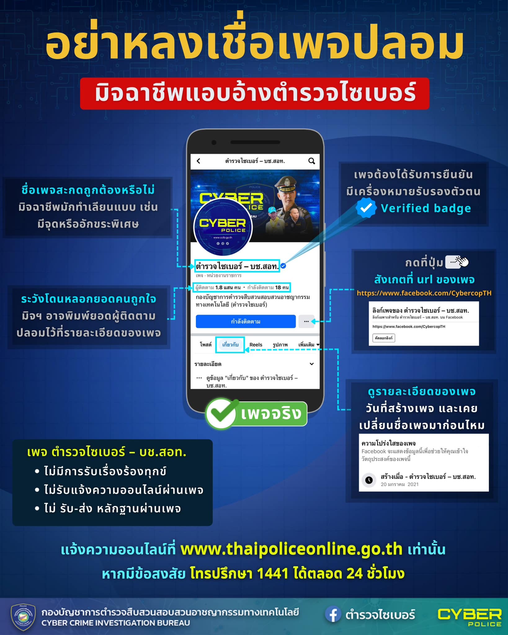 #เตือนภัยประชาชน ระวัง! เพจตำรวจไซเบอร์ปลอม ฉวยโอกาสอ้างช่วยยื่นคำร้องขอคุ้มครองสิทธิจากการถูกหลอกลว