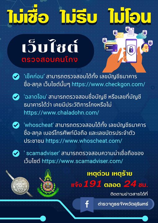 วันนี้เรามีเว็บไซต์ตรวจสอบคนโกงมาอัพเดตครับ อย่าลืมเช็คก่อนโอนทุกครั้ง ลดโอกาสถูกหลอกกันนะครับ1. ‘เช